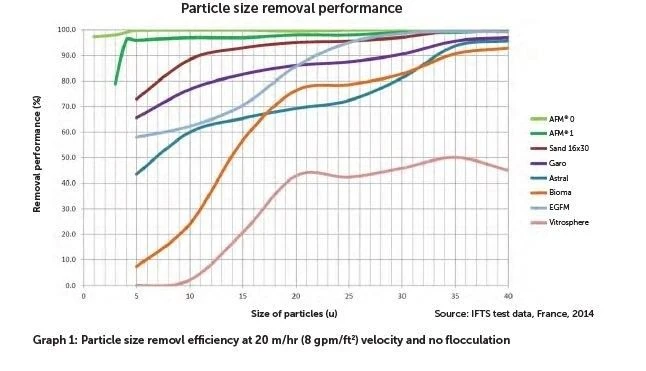 Door de hoge negatieve lading, filtert AFM electrostatisch en bereikt zo een filterprestatie van 4 micron bij lage filtratiesnelheden.