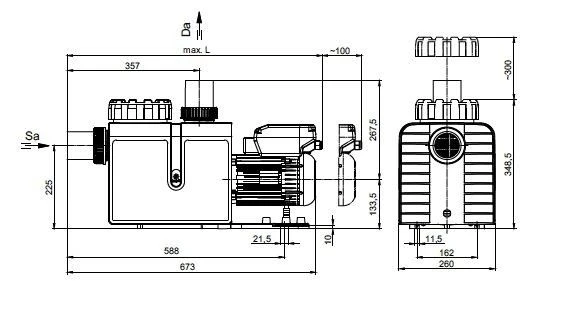 - De pomp is voorzien van een motor met opgebouwde toerenregeling