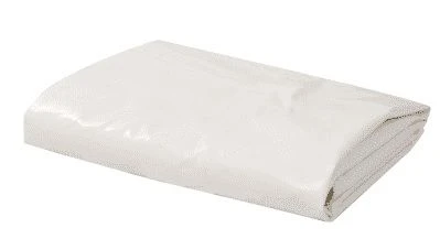 Kleur wit. PVC, polyesterdoek, ca 600 gr/m2.