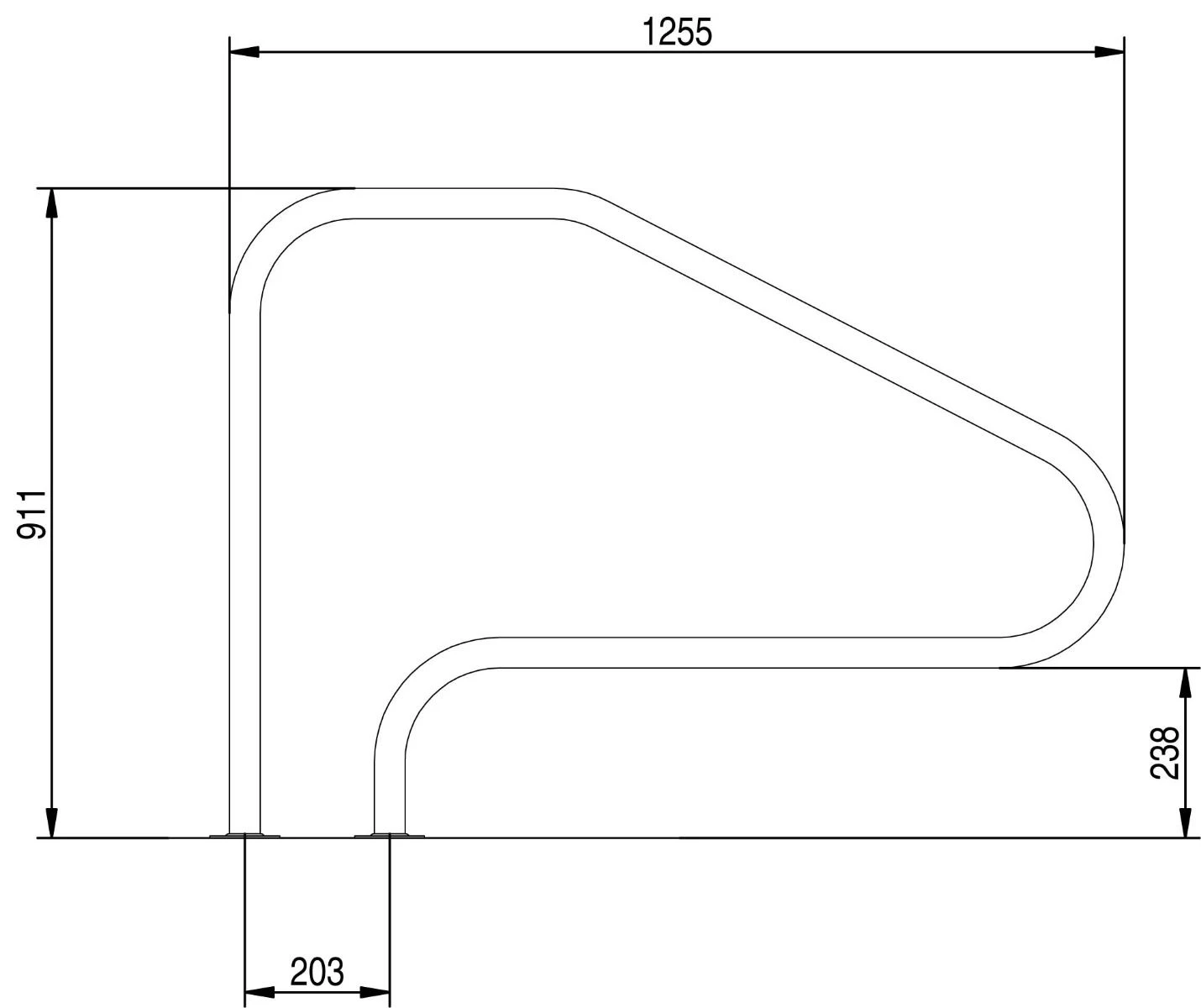 - De handrail is gemaakt van AISI-316 staal, ø 43 mm buis