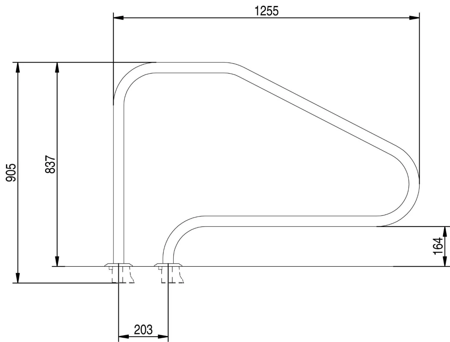 - De handrail is gemaakt van AISI-316 staal, ø 43 mm buis