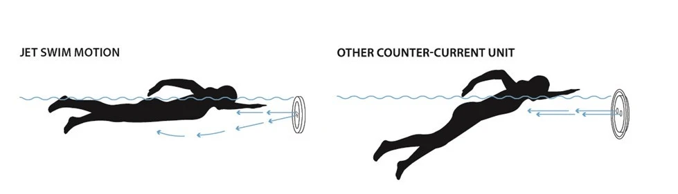 Jet Swim Motion is gemaakt van zuurbestendig roestvaststaal AISI 316L en heeft een volledig nieuwe stromingstechniek met twee ovale inspuiters, waarvan de onderste naar beneden is gericht voor een gelijkmatigere verdeling van de stromen. Deze biedt een veel natuurlijkere zwemtechniek in vergelijking met de meeste tegenstroomtoestellen op de markt.