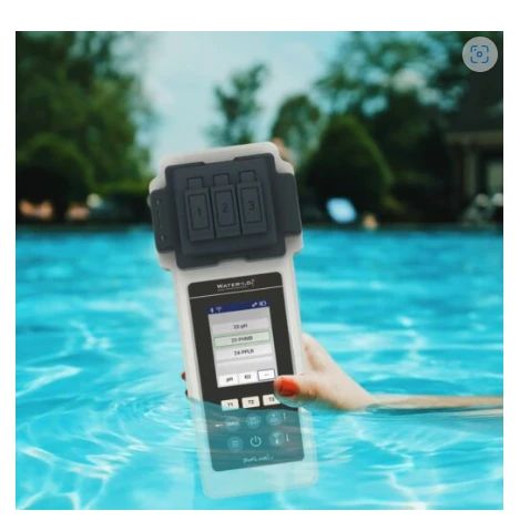Het vaste maar verwisselbare deksel met 3 holtes maakt snelle monstername mogelijk door de IP68 waterdichte PoolLAB 2.0 eenvoudigweg in water onder te dompelen. Het heeft 9 toetsen die direct toegang geven tot de NUL-bediening (slechts één per meetserie nodig) en tot de 24 verschillende zwembadwaterparameters.