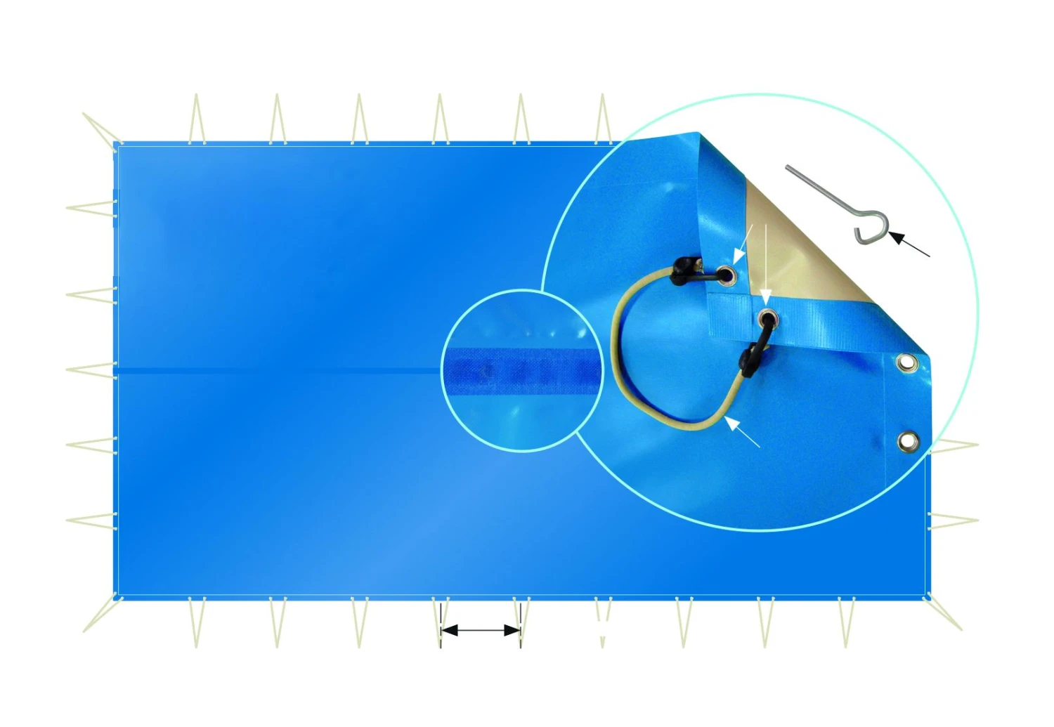 Deze afdekking is geschikt voor baden van 10 x 4m rechthoekig.