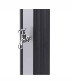 De Milano XL zonnedouche heeft een grote warmwatertank van 35 liter. Milano XL verwarmt het water in de tuindouche en de regeling tussen koud en warm water gebeurt via een ingebouwde mengdouche.
